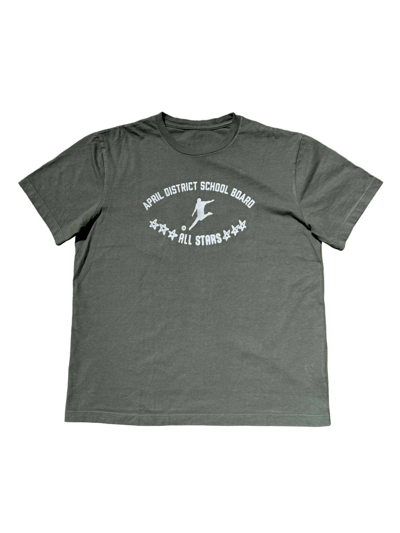 Olive green tee with a weathered design featuring hand-drawn elements. Built from heavyweight cotton for a structured fit and feel.
